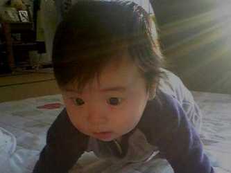 そして柑太は、つかまり立ちをするようになった。 | 寝返りをするようになって、コロコロと転がって部屋中を動き回っていたと思ったら 今は、ハイハイをし、そしてつかまり立ちをするようになった。 赤ちゃんの成長は早いと、いまさらながら思った。 5月のゴールデンウィークの時には、宇都宮に泊まりがけで、遊びに来てくれるらしいので その時は歩き始めているかなと、今から楽しみだ。 |