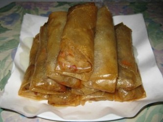 中華料理にも合うと書いてあったので、今日は春巻きの具としてに入れてみた。 | 竹の子の変わりとして使ってみたが、たくさんの野菜を炒めたので、ヤーコンは あまり自己主張してしていなかった。でもとっても美味しい春巻きが出来上がった。