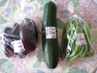 行ってみた。 地産地消のお店だ。教えてくれた人は、東京出身で亀有に実家が あり、3年前にご主人の転勤で神戸から 宇都宮に来たとかで栃木の人ではないのだが。。 茄子、ズッキーニ、いんげんは100円。 他の野菜もスーパーで売っているよりも 安い値段だった。 きゅうり、ねぎ、キャベツも 買ってきた。 きゅうりはトゲが痛い程。 何よりも新鮮なのが1番! 9時半開店なのだが、お昼前に、ほとんどの野菜が なくなってしまうと聞いていたので開店早々の 9時半に着くように行った。 お店の中は主婦でいっぱいだった。