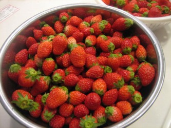 幼稚園で親しくなったママさんが、たくさんのイチゴを届けてくれた。 | 実家がイチゴ農家で今年最後の収穫のイチゴ。 市場に出すのは、粒の揃った大きなイチゴなのかな? ジャムにして食べてくださいとの事だったが、もったいないので生で食べた。 有佳里も光汰朗もイチゴが大好物。 洗った山盛りの苺を美味しそうに食べていた。 食べきれないと思い、もちろん、ジャムも作った。 |