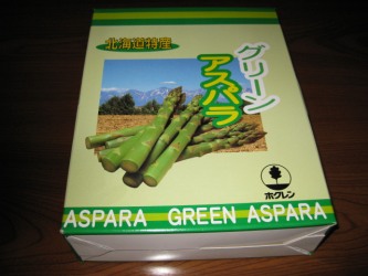 妹から北海道のアスパラが送られてきた。 私が小樽に行った4月に路地物のアスパラが予約販売をしていたので、注文してくれた。 5月中旬から採りたてを注文の予約受付順に配送してくれるとの事だった。 5月末に東村山に戻った時は、宇都宮に届いているかなと心配したが、6月始めに 届いた。良かった〜。 北海道からの宅急便は普通は2日かかるのだけど、 今回は1日で届く特急冷蔵便だった。 飛行機を使っての宅急便なのかな〜 だから超新鮮なアスパラだね。 美味しい内に食べようと毎日、アスパラ料理を食べた。 茹でアスパラをマヨネーズで食べるのは美味しいけれど、毎日では飽きてしまうので いろいろと簡単料理を作った。 生のままでバター炒めは美味しいよね。 お昼に、のり巻き(茹でアスパラ、蟹カマ、玉子焼き、レタス、マヨネーズ)を作った。 フライや肉巻きはメーン料理になる美味しさで、主人も大喜びだった。 やっぱり北海道産のアスパラは最高! (笑)