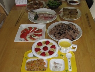 今日は柑太、1歳の誕生日。 おめでとう〜♪ 千葉の病院で生まれた柑太に会いに行った時の事を書いている2008年6月8日の日記を 読んだ。 その頃、主人が坐骨神経痛になり、足が痛くて運転が心配だった。 それで三太さん運転で美映家族と一緒に千葉まで行ったと思い出した。 柑太はほとんど泣かない大人しい赤ちゃんだった。 今日のお祝い膳の写真を送ってもらった。 お赤飯、鯛のお造りなど、その他いっぱいのお料理が並んでいる。 きっと、パパとママで乾杯し、美味しいお料理を食べてお祝いしたのでしょうね。 柑太にも、可愛らしい幼児用の献立を用意したのね。 美味しそう〜〜 来年の2歳のお誕生日には、同じ献立で一緒に食べる事が出来るね。
