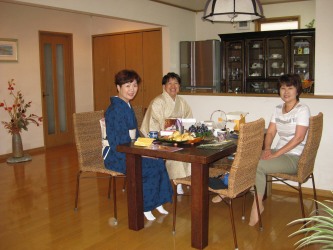9月1日はSさんのお宅でのお稽古だったが、今日はT田さんのお宅だった。 | マンションの10階なので、見晴らしが良い。 宇都宮大学の工学部の校舎と緑の木々が見える。 とってもきれいで素敵なマンション! 今日のために、ご主人も協力して片付けをしてくれたとか。。。 お客さんが来ると云う事は、お部屋がきれいになるので時々は必要よねとT田さん。(笑) お教室が終わると美味しいお茶菓子と楽しいおしゃべりの時間だ。 T田さん手作りのアールグレーのシフォンケーキは、絶品の美味しさだった。 そして4人とも楽しい笑い話しが大好きなので、笑いどおしだった。 9年連続200本安打達成のイチローが毎日、カレーを食べると聞いたT田さんのご主人が 「毎日、夕飯はカレーを作ってくれ、そしたら俺だって」と冗談で言ったんだって。。 それだけで、みんなは大笑いした。 ユーモアたっぷりのご主人なんだね。 |