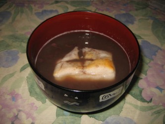 圧力鍋は、本当に凄いとつくづく思った。 | 以前だったら、小豆を煮るのは、時間がかかって面倒な作業だったのに、 圧力鍋だったら、ことことと煮るのは、たったの15分!。びっくり〜 少し冷めたところで味見をしたら、なんて美味しい事! スプーンで食べていたら、止まらない。 危ない、危ない!(笑) 久し振りにお汁粉が食べたくなり、アンコを薄め買ってきたお餅を焼いて作った。 お餅大好きな主人も大喜び! そう云えば、1年以上お汁粉を食べていなかったよ〜(笑) |