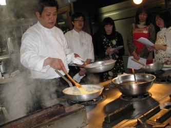 「ミラノ食堂」で開催されるイタリアンの料理教室に参加してきた。 蛤のリゾット ベシャメルソース ミートソース ラザニア 黒ゴマパンなどを 習ってきた。 本場ミラノで修業してきたシェフが実際に作って見せてくれる。 今日は35人の参加だったが、あまりの人気で今月は2回に分けて開催されるそう。 黒ゴマパンは、見ていると簡単に作れそうで、ちょっと挑戦してみようかと思った。 リゾットとラザニアも、思ったより簡単で作ってみたいが、食事制限している主人には カロリーが高過ぎるかな〜と。。。リゾットのビデオは →ここ