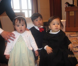 大阪でサッカー教室に入ると聞いていたが、1回目の教室の時の写真が届いた。 | 紺と黄色のユニホームを着て、ボールに腰かけている写真だ。 柑太はパパに似て、活発でジッとしていられないタイプなので、 サッカーをやらせてみようと思ったらしい。 2歳からのスクールなのだが、 柑太は6月で2歳になる。 運動神経を見る面接を受けて合格して、 めでたく通える事になったらしい。 頑張ってね。 はなちゃんのメールより 昨日は結婚式があり、家族でお招き頂いたので行ってきました。 柑太は思っていたよりも大人しくしていたので、貞治さんも私もお食事を 全部食べれました! 同じくらいのお友達も参列していたので、 柑太もあまり退屈しなかったんだと思います。 今年のお正月、狭山不動尊の護摩焚きの時に飽きて、ジッとしてられない柑太だった。 柑太を連れてのお出かけは、大変だろうな〜と心配していたのだが。。。 今回は、柑太が大人しかったので披露宴での食事を全部食べる事が、出来て良かったね。