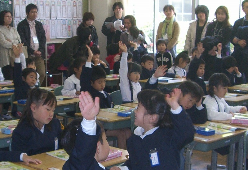 美映からは、有佳里の授業参観の様子を写した写真が届いた。 | まっすぐ伸ばして手を挙げている有佳里。 始めての参観日の記念写真だね。 学校生活にも慣れて楽しそうに通っているらしい。 そして、中々撮れない朝大の歩く様子のビデオが届いた。 ママがビデオを構えると、せっかく歩いていても、ハイハイして飛んでくるのでビデオが 撮れないらしい。 今日はパパに撮ってもらったとか。。。ビデオはここ まだ9ヵ月なのに歩きだした朝大は、たいしたものだ。 がっちりとした体格で、そのうち光汰朗お兄ちゃんとけんかしたら、強そう〜(笑) 朝大の初節句のお祝いの鯉のぼりが元気良く、泳いでいる写真も送ってくれた。 庭に設置する様な大きな鯉のぼりではないが、ベランダの鯉のぼりを見て 有佳里と光汰朗が大喜びしているみたいだ。 |