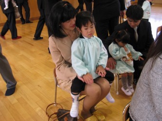 始めて、りす組の教室に入り、光汰朗は緊張気味、先生から説明を受けて | 式が行われる講堂に向かった。 新しい幼稚園で、とってもきれい。 ビデオは ここ 私が講堂に入って写真を写しても大丈夫な雰囲気だったので、中に。。 いよいよ式が始まった。園長先生の挨拶は分かりやすく優しい感じでgood!。 ビデオは ここ 次に先生の紹介で式は終わった。エッ〜 来賓の挨拶はないの? 先生紹介のビデオは ここ 宇都宮の入園式では、確か何人かの来賓の挨拶があったと記憶している。 幼稚園児にとっては、飽きてしまう入園式だが、この短さでは大丈夫だと思った。