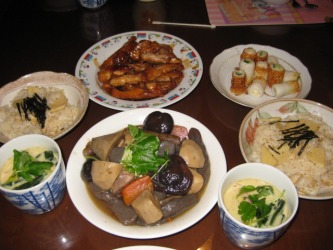 今日の夕食は、筍ごはんと筑前煮と茶碗蒸しとその他いろいろ美映が作った。 | 今年初めての筍ごはんは、香り高く、美味しかった〜 筑前煮も茶碗蒸しも美味しく出来上がり、モリモリ食べた。 そしてデザートの苺のタルトは、美映自慢のスイーツだ。 写真は →ここ タルト生地を焼いて、カスタードクリームと生クリームを入れて苺を乗せていた。 去年の7月の時に作ってもらった、ふわふわ生地のロールケーキも美味しかったが、 この苺のタルトも負けず劣らず、美味しかった〜 子供達も大喜び! 3人の子供で忙しい毎日なのに、料理、お菓子作りに頑張っているなと感心した。